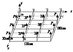 算例2.2:如圖2.1所示的九盒段結構,由64個桿元件、42個板元件構成,材料為鋁合金,原始數(shù)據(jù)取自文獻[11]。已知外載荷與各個單元的強度均為正態(tài)隨機變量,且外載荷