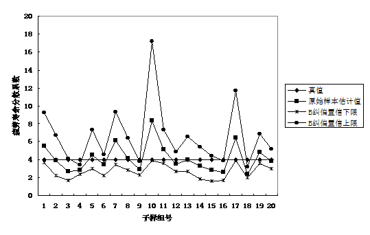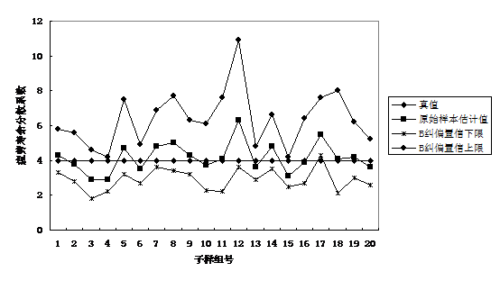 圖9.2 各種不同方法計算的20組容量為10的子樣的疲勞分散系數(shù)